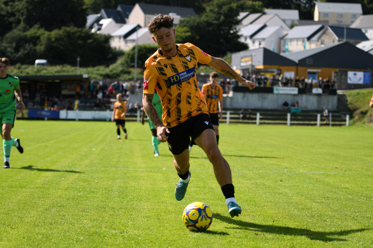 It was very much a game of two halves at Bickland Park in the 2nd game of Falmouth Town’s new venture into the Southern League as they went in at half-time 3 up against 10 man Willand Rovers, only to concede three after the break resulting in an entertaining 3-3 draw.