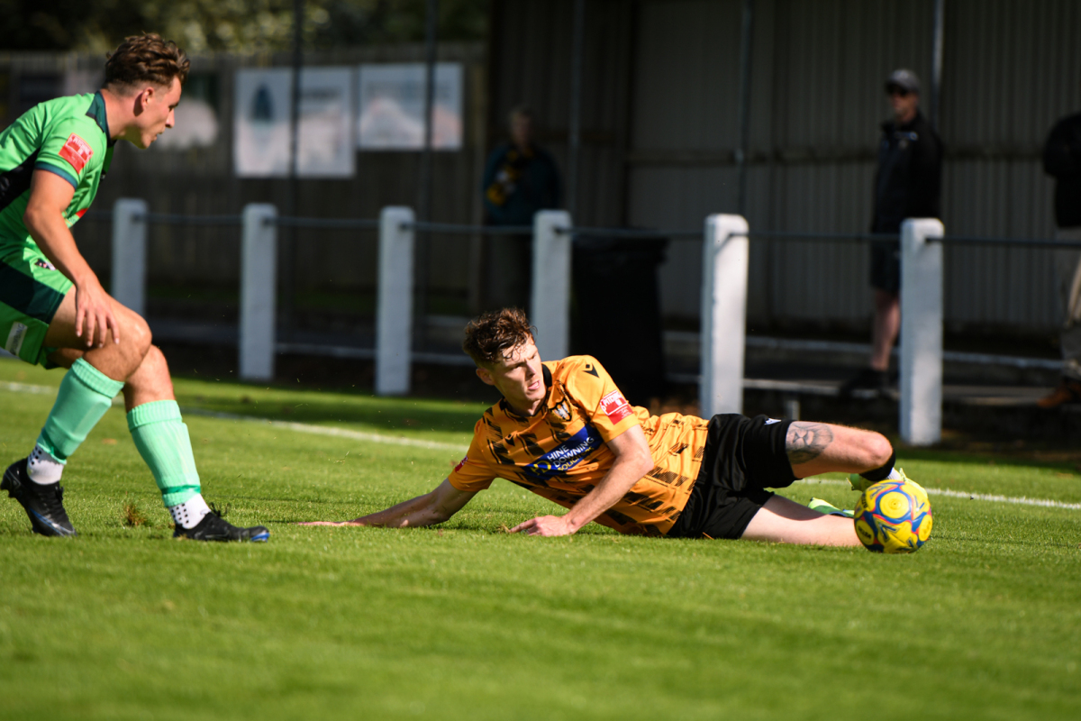It was an even start to the first half with neither side creating any clear-cut chances but the game changed on 22 minutes when Willand captain Owen Howe was sent off for an elbow on Falmouth’s Tom Annear. The linesman refreshingly stepping forward with an opinion as the incident happened right in front of him. Three minutes later Falmouth’s Luke Barner opened the scoring from a cross by Oscar Massey. Massey ran on to a clever ball inside the full back and cut the ball back to Barner who was waiting on the edge of the 6 yard box. He calmly side footed his shot past George Burton in the Willand goal to make it 1-0 to Falmouth.